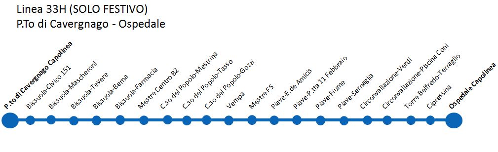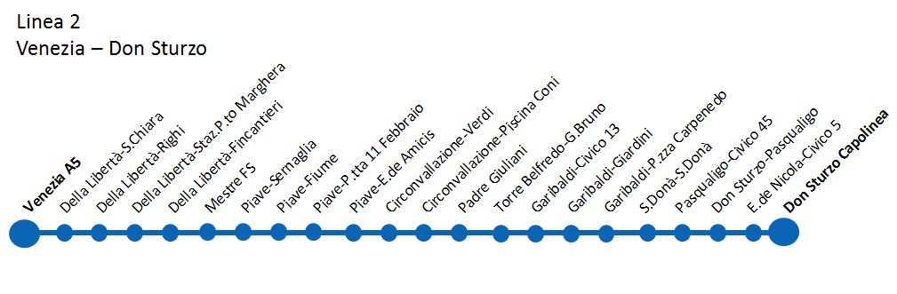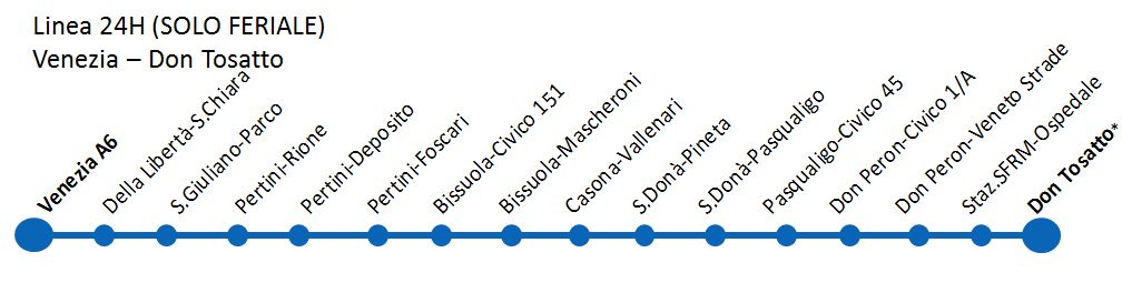 N.B.: nei giorni feriali partenze da Venezia dalle ore 05.55 alle ore 09.27 con transito a Mestre Centro B4. Nei giorni festivi partenze da Venezia dalle ore 07.00 alle ore 10.00 con transito a Mestre Centro B4.