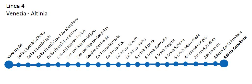 N.B.: Nei giorni feriali partenze da Venezia dalle ore 06.35 alle ore 09.42 con transito a Mestre Centro B4. Nei giorni festivi partenze da Venezia dalle ore 07.15 alle ore 09.45 con transito a Mestre Centro B4 .